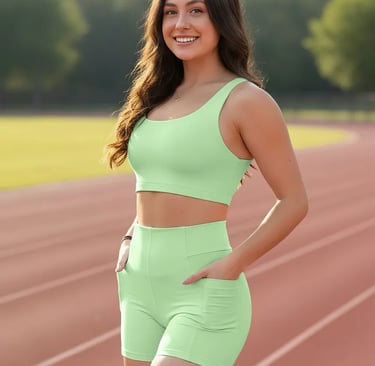 Conjunto Top Alcinha E Short Com Bolso Cintura Alta Academia